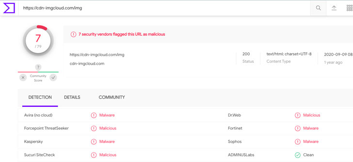 The campaign is said to have begun as early as January 2021, according to MalwareBytes, with the harvested information — names, emails, phone numbers, credit card data — exfiltrated to a remote server "cdn-imgcloud[.]com" that also functioned as a collection domain for a Magecart attack targeting Amazon CloudFront CDN in June 2019.