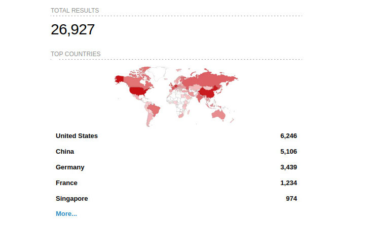 total of around 27,000 hosts have been identified via a search on IoT search