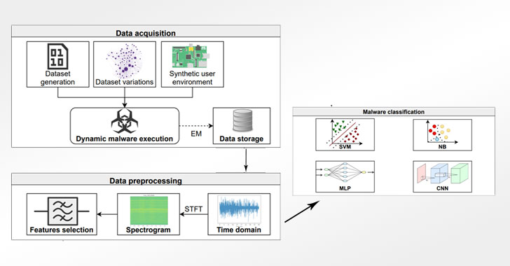 "[B]y using simple neural network models, it is possible to gain considerable information about the state of a monitored device, by observing solely its [electromagnetic] emanations," the researchers concluded. "Our system is robust against various code transformation/obfuscation, including random junk insertion, packing, and virtualization, even when the transformation is previously not known to the system."