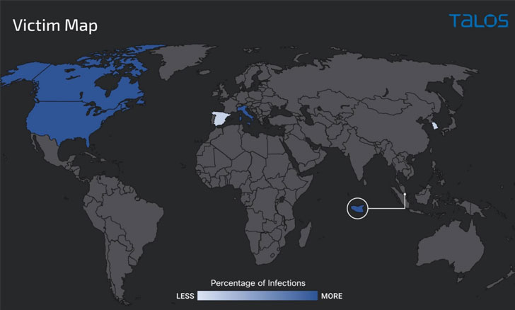 The campaign is said to have claimed 2,170 victims across 111 countries as of January 2, 2022, with most of the affected parties located in the U.S., Canada, India, Indonesia, and Australia. It's also notable for the fact that it wraps itself in layers of obfuscation and other detection-evasion methods to elude discovery and analysis.