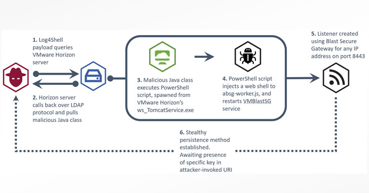 In the subsequent weeks, four more weaknesses in the utility have come to light — CVE-2021-45046, CVE-2021-45105, CVE-2021-4104, and CVE-2021-44832 — providing opportunistic bad actors with persistent control over the compromised machines and mount an evolving array of attacks ranging from cryptocurrency miners to ransomware.