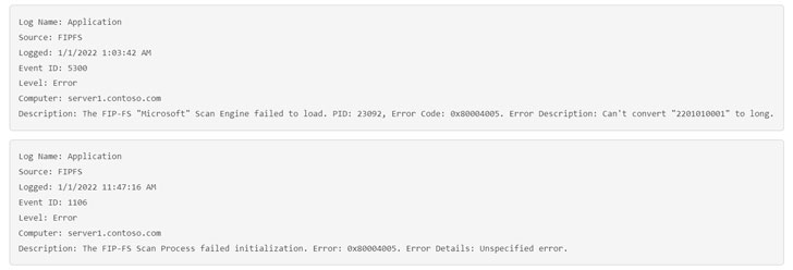 The issue began to gain attention as the year 2022 kicked in, causing the servers to no longer deliver email messages while throwing the following error message: "The FIP-FS 'Microsoft' Scan Engine failed to load. PID: 23092, Error Code: 0x80004005. Error Description: Can't convert '2201010001' to long."