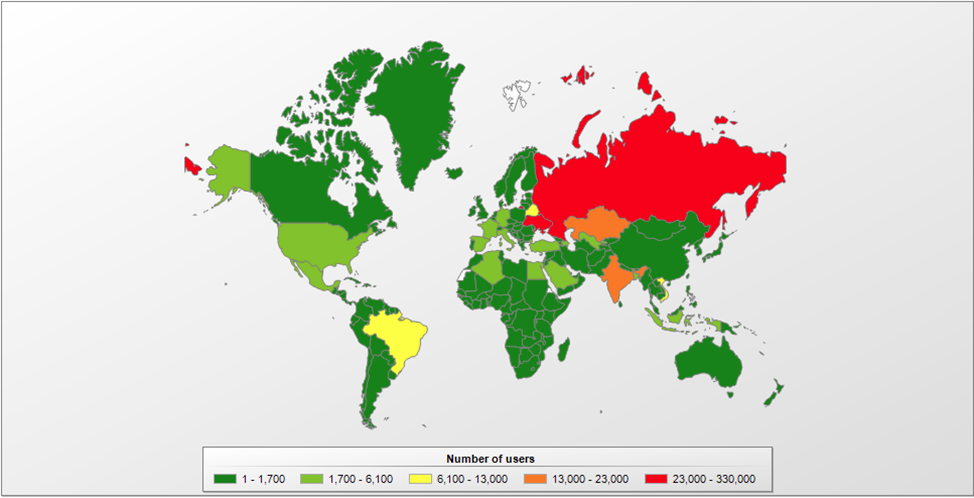 It’s easy to notice if you’ve fallen victim to an advertising partner program: the system has new apps that you didn’t install, ad pages spontaneously open in the browser, ads appear on sites where they never used to, and so on. If you notice these symptoms on your computer, and in the list of installed utilities there is, for example, setupsk, Browser Enhancer, Zaxar game browser, “PC optimizers” (such as Smart Application Controller or One System Care), or unknown browsers, 99% of the time it’s pay-per-install network. Every month, Kaspersky Lab security solutions prevent more than 500,000 attempts to install software that is distributed through advertising partner programs. Most such attempts (65%) happen in Russia.