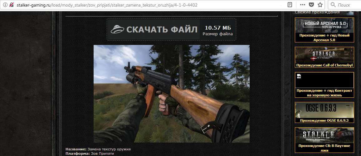 To illustrate the process, we chose a scheme used by several partner programs. Let’s look at a real page offering to download a plugin for the S.T.A.L.K.E.R. game.