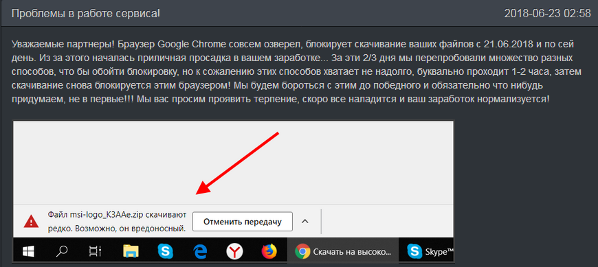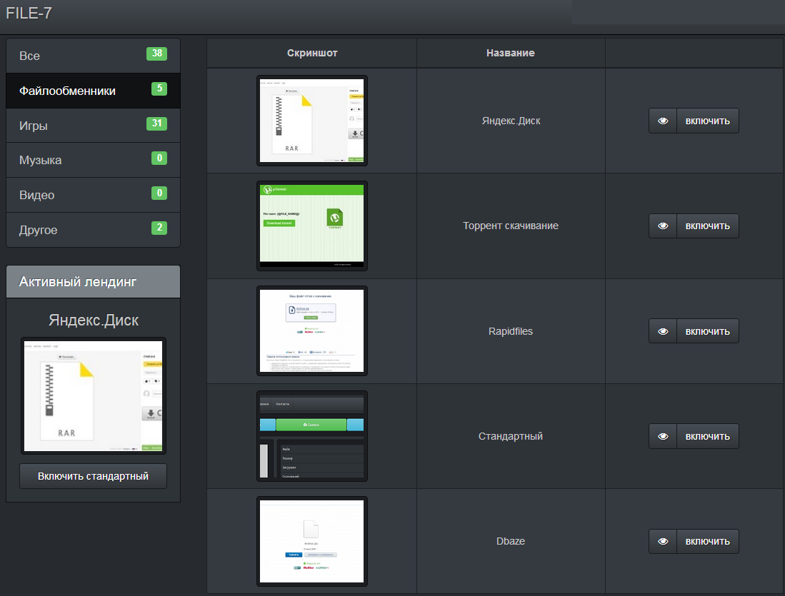 On attempting to download it, the user is redirected to a landing page selected by the administrator of the file-sharing site when loading the file onto the partner program server. Such pages often mimic the interface of popular cloud services: