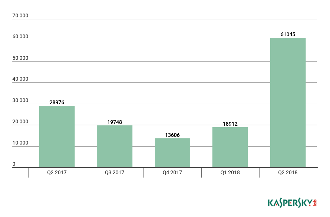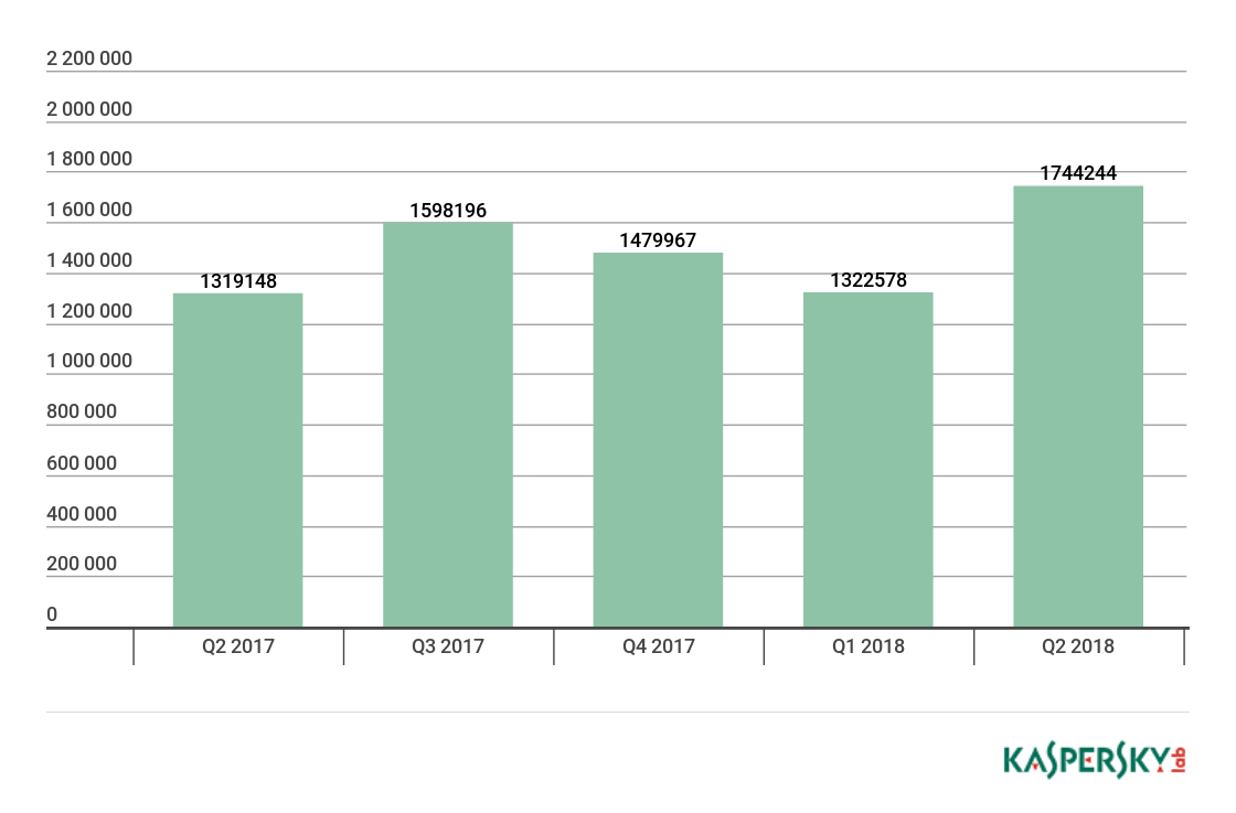 In Q2 2018, Kaspersky Lab detected 1,744,244 malicious installation packages, which is 421,666 packages more than in the previous quarter.