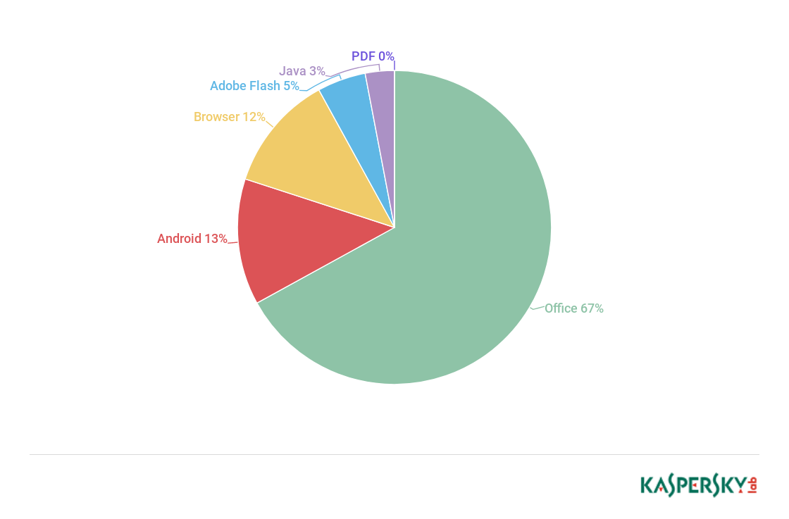 Distribution of exploits used in cybercriminals’ attacks by types of attacked applications, Q2 2018