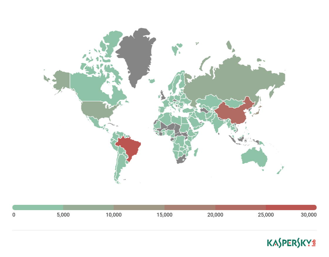 Excluded are countries with relatively few Kaspersky Lab users (under 10,000).