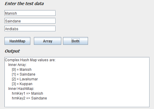 We have removed the "Andlabs" entry from the String Array and added two extra entries (ie. "Lavakumar"and "Kuppan"). Also the "hmKey3" entry has been removed from the inner HashMap (highlighted above). Now as soon as we save this XML and close the editor, the code in DSer will convert this XML back to a JAVA object which will look similar to this: