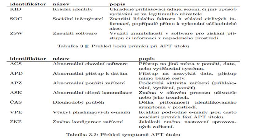 V dalších sekcích jsou blíže popsány jednotlivé symptomy, které indikují, že je organizace pod APT útokem.