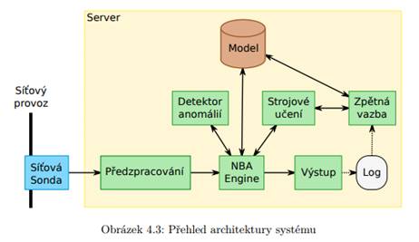 NBA Engine Hlavní modul zajíšťující behaviorální analýzu. Dostává vždy právě jeden tok z předzpracování, načte pro něj odpovídající profil z modelu a pokud je profil kompletní, zajistí porovnání daného toku s profilem a detekci anomálií. Pokud byl tok porovnán a bylo usouzeno, že se jedná o normální tok, zajistí aby byl profil aktualizován. Pokud byla detekována anomálie, k aktualizování profilu nedojde a jsou místo toho odeslány informace na modul výstupu. Pokud nebyl profil kompletní, NBA Engine pouze zajistí, aby byl daný tok zahrnut do profilu.