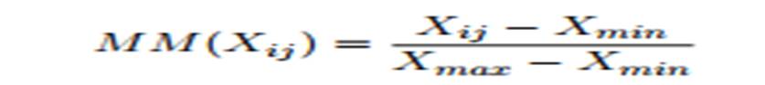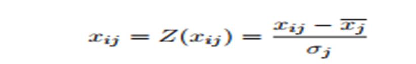 kde 𝑥𝑗 označuje průměrnou hodnotu parametru 𝑗 a 𝜎𝑗 jeho standartní odchylku[26]. Jinou možností je přemapovat hodnoty metodou min-max x do intervalu kde 0 označuje minimální hodnotu a 1 maximální pomocí vzorce: